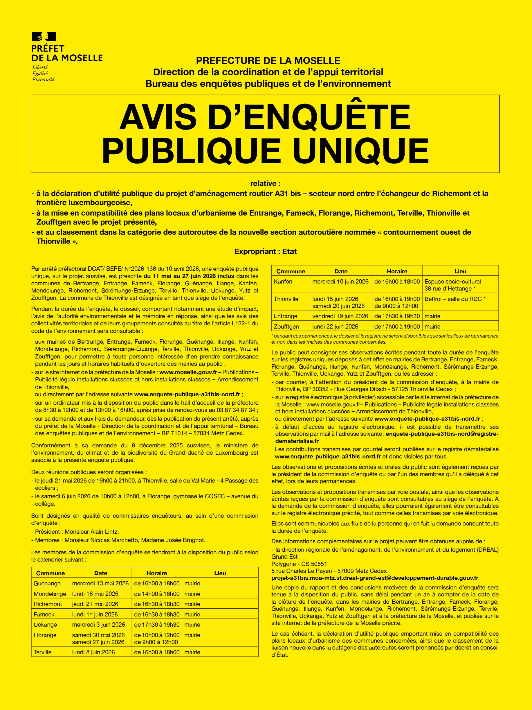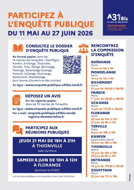 Les membres de la commission d’enquête se tiendront à votre disposition le lundi 8 juin 2026, de 16h à 18h, à la mairie de Terville.