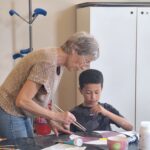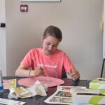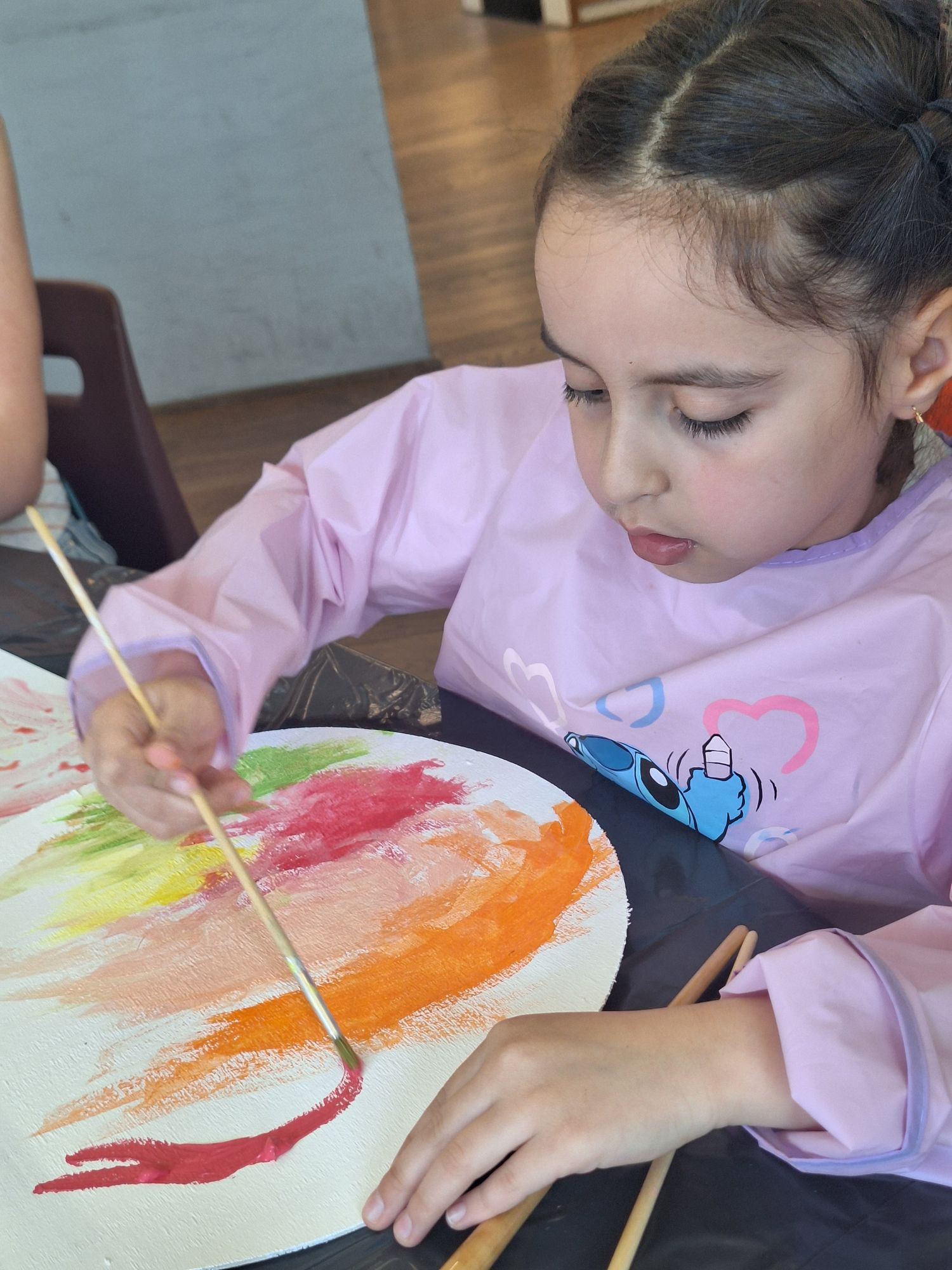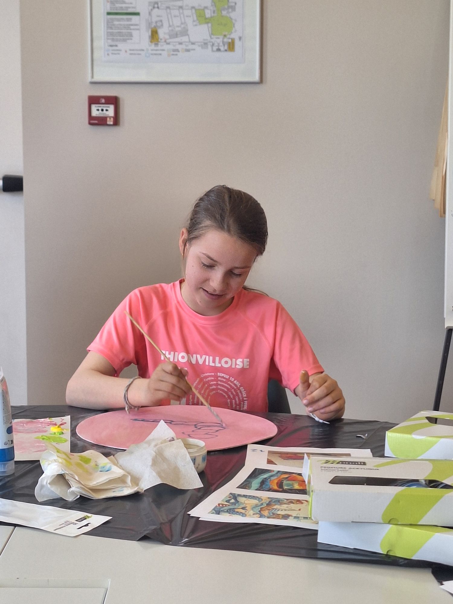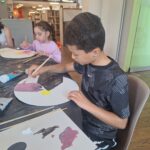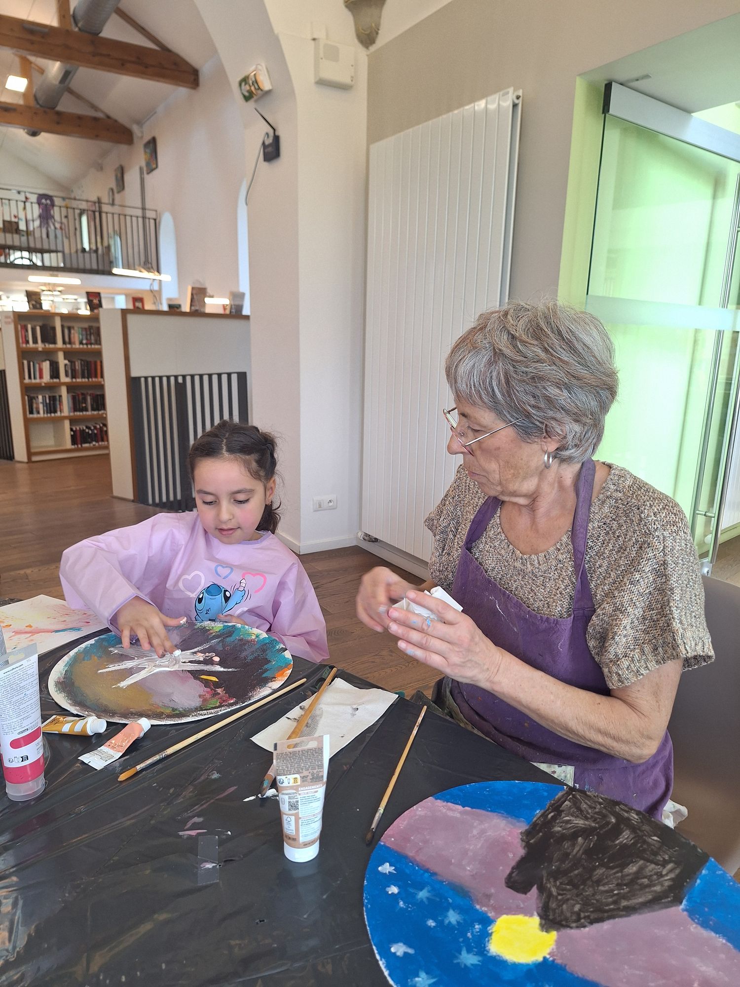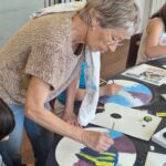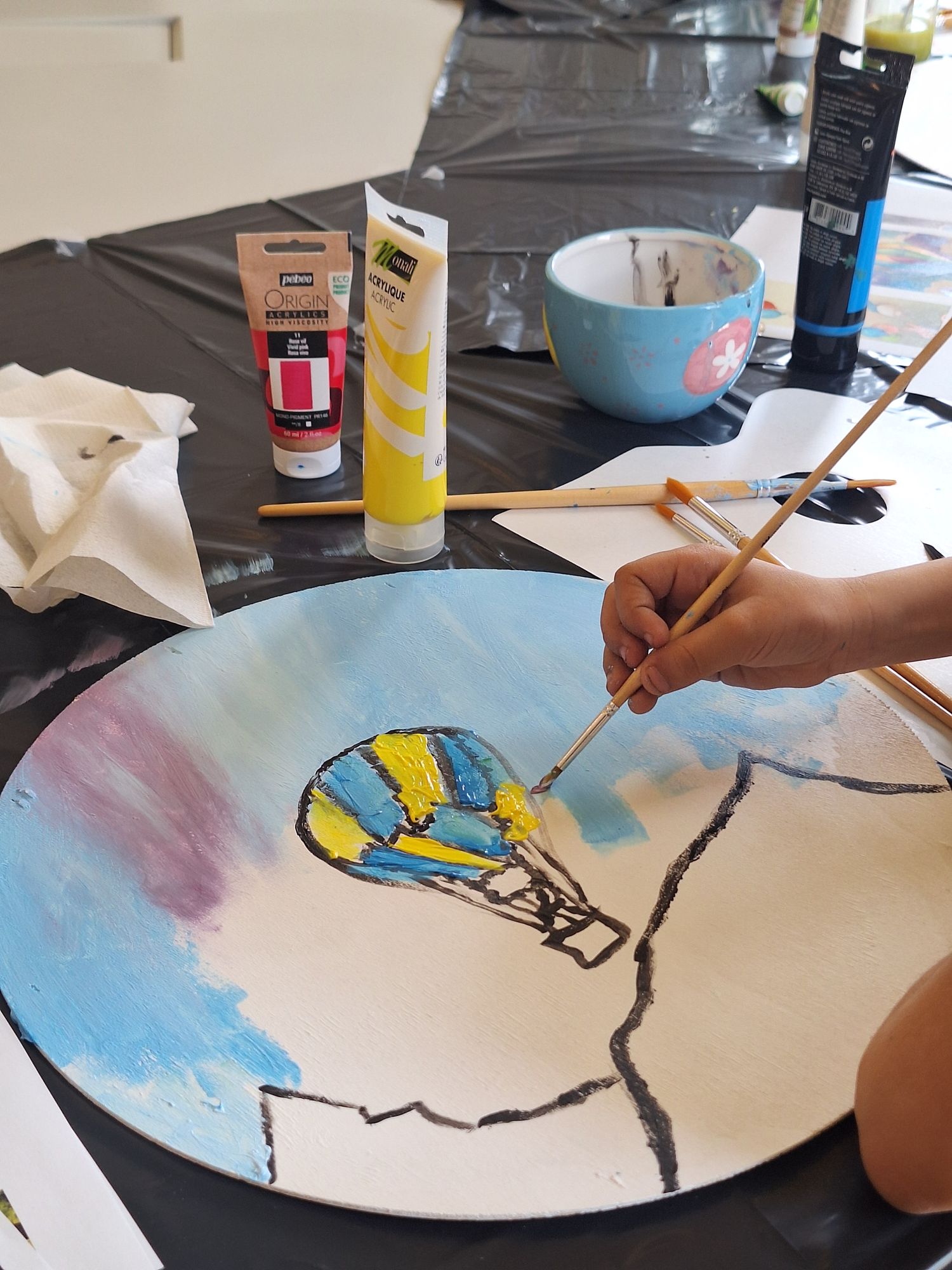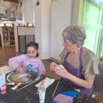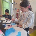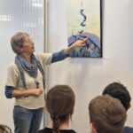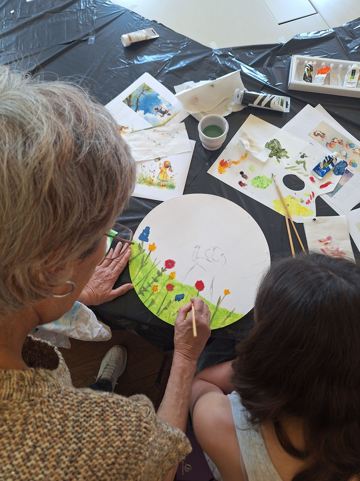 Dans le prolongement de son exposition « Éclats d’azur » à la médiathèque, Brigitte Pinel a proposé plusieurs temps d’échanges avec le public. Elle a d’abord accueilli la classe de CE2-CM1 de Manelle Benkhelifa, enseignante à l’école Pilâtre de Rozier, pour une découverte de son univers. Les élèves, très curieux, ont multiplié les questions : « Combien de temps faut-il pour réaliser une œuvre ? », « D’où vient l’inspiration ? », « Peut-on vivre de son art ? ». Autant de sujets qui ont nourri un dialogue spontané, mêlant réflexion et partage autour du processus de création. Brigitte Pinel a également animé un atelier de peinture ouvert à tous. Les participants ont pu y expérimenter les techniques de l’artiste. Guidés pas à pas, ils ont exploré les jeux de couleurs, de textures et de compositions qui caractérisent son travail.