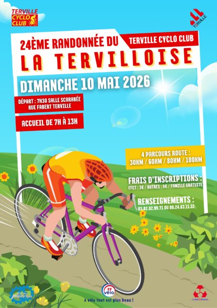 Le Cyclo Club Tervillois organise la Tervilloise au départ de la salle Scarabée, rue Fabert, le 10 mai 2026 de 7h à 13h.