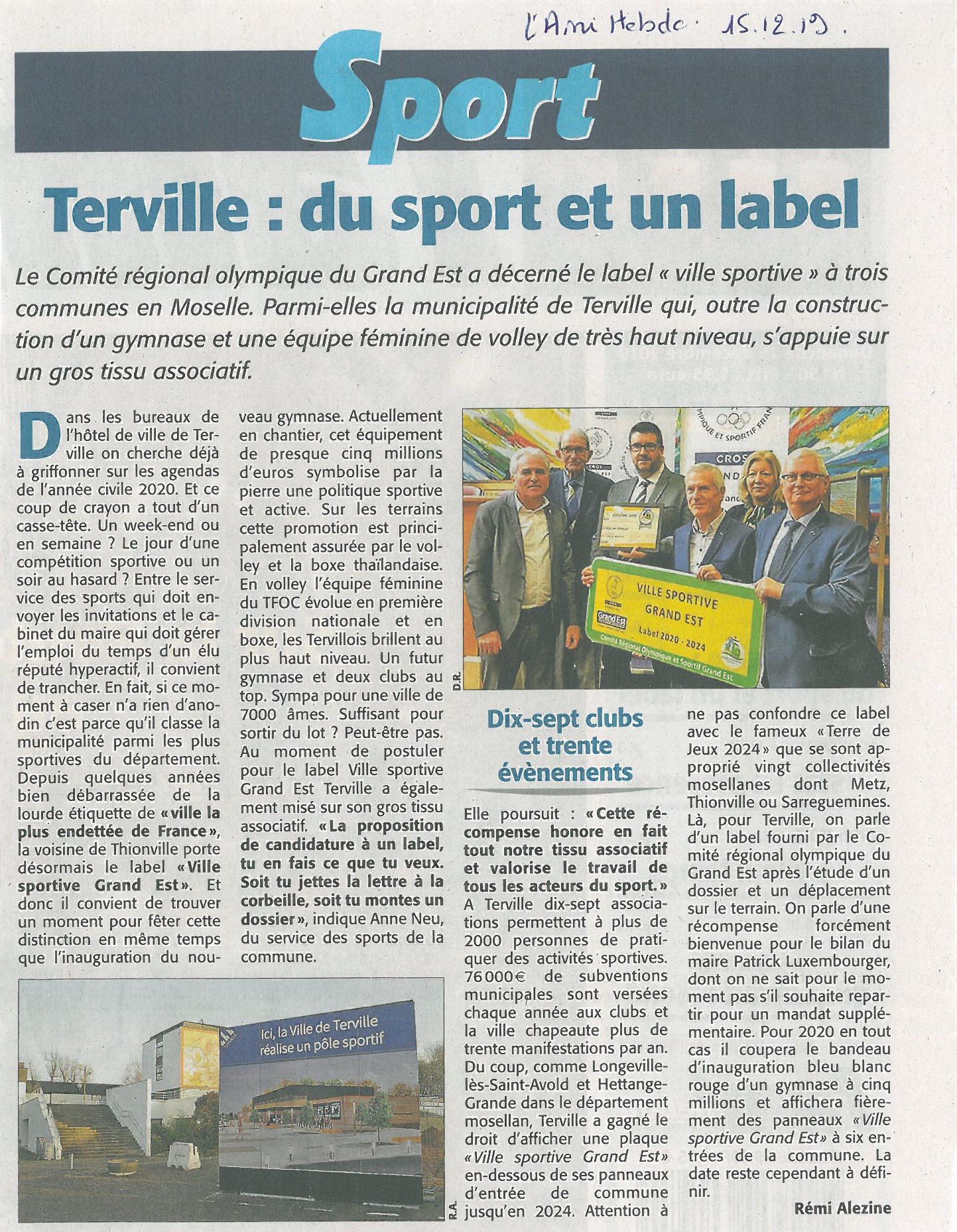 * Seules trois communes mosellanes récompensées par ce label : Terville, Longeville-les-Saint-Avold et Hettange-Grande. Ce Label, qui existe depuis 2012, récompense les villes de 500 à 20 000 habitants investies dans la pratique.
